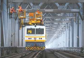 Catenary Equipment under Maintenance on Jiujiang Yangtze River