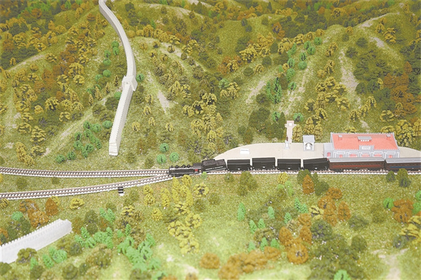 京張鐵路記憶館內(nèi)展陳的京張鐵路“人”字形線路沙盤。高 磊 攝