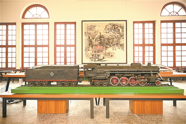 津浦鐵路泰安博物館內(nèi)陳列的蒸汽機(jī)車和復(fù)興號(hào)列車模型。