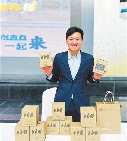 蘇允愷展示他和團(tuán)隊研發(fā)的咖啡產(chǎn)品。