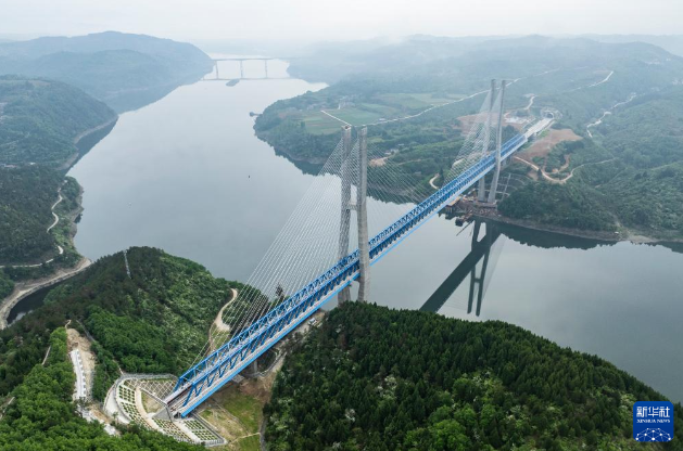 4月15日,西十高鐵湖北段正式啟動重聯(lián)動車組逐級提速試驗(yàn)。這是位于湖北十堰的西十高鐵漢江特大橋?! ⌒氯A社記者伍志尊攝