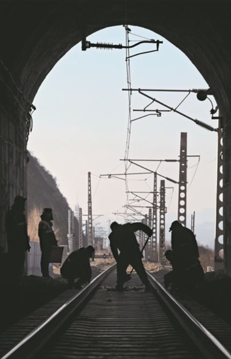 當天的工作只有兩個半小時的“天窗點”,此期間,不會有列車駛過。在黑黢黢的隧道里,他們走在鐵路線上可以做到不用看腳下的軌枕,因為60厘米的固定間距,他們早已形成了肌肉記憶。