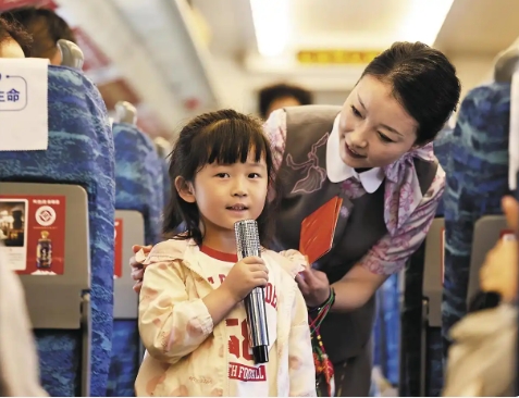 今年以來,青藏集團公司依托鐵路沿線特色資源,開行多趟主題旅游列車。其中,“大美青?!ば腋N鞑亍睂A幸验_行8趟,服務(wù)游客2500余人次。此外,“六一”紅領(lǐng)巾專列、“研學(xué)專列”等特色列車也深受群眾歡迎,通過唱紅歌、非遺體驗等活動,讓旅客在旅途中接受文化熏陶。